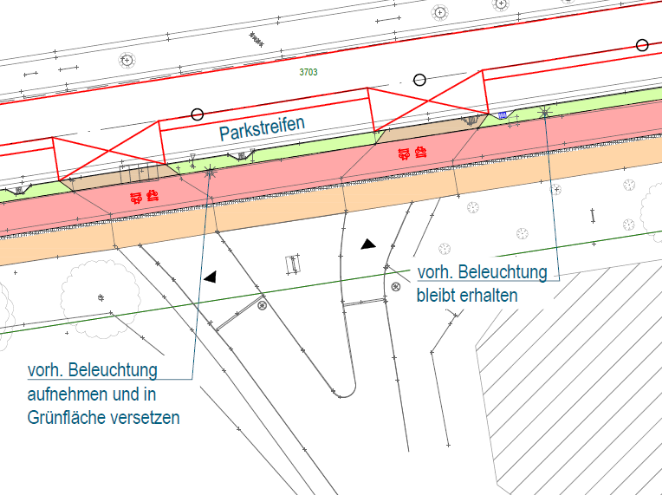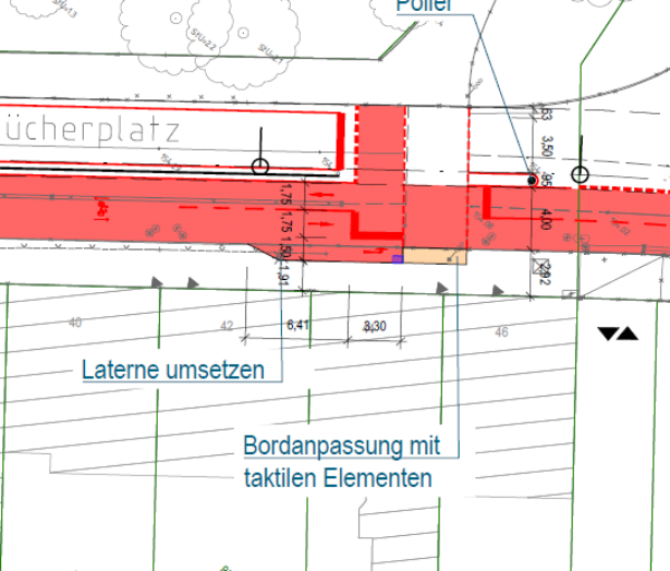 Bereich Bedarfsampel Blücherplatz (Mit Aufweitungen auf beiden Seiten zum Bestand)